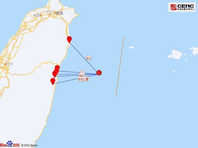 震中距新城乡79公里、距花莲市81公里、距苏澳镇83公里、距吉安乡84公里、距寿丰乡89公里,距花莲县81公里,距台北市145公里。