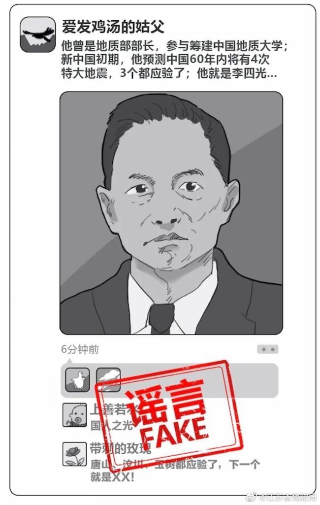 去年11月以来,江苏境内多次地震,12月29日、30日又分别在黄海海域和淮安发生地震。12月31日晚22时52分,@江苏省地震局 为此特意将一个流传很广的谣言挂起在微博上郑重辟谣。